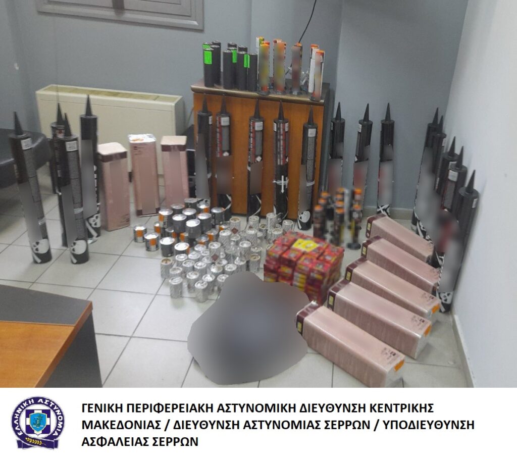 Επιπλέον, συνελήφθη ένας ημεδαπός άνδρας, ο οποίος εντοπίστηκε να εξέρχεται από την οικία του παραπάνω ημεδαπού και στην κατοχή του βρέθηκε και κατασχέθηκε μία συσκευασία πυροτεχνημάτων των 100 βολών.