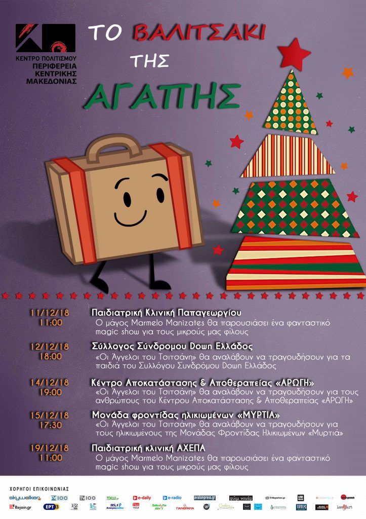 Το Κέντρο Πολιτισμού της Περιφέρειας Κεντρικής Μακεδονίας συνεχίζει δυναμικά με «Το βαλιτσάκι της αγάπης» να επισκέπτεται Νοσοκομεία, Ορφανοτροφεία, Σωφρονιστικά Ιδρύματα, Γηροκομεία και να διασκεδάζει μικρούς και μεγάλους.