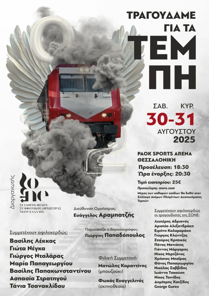 Μέρος των καθαρών εσόδων θα δοθεί στον Σύλλογο Ατόμων Πληγέντων Δυστυχήματος Τεμπών