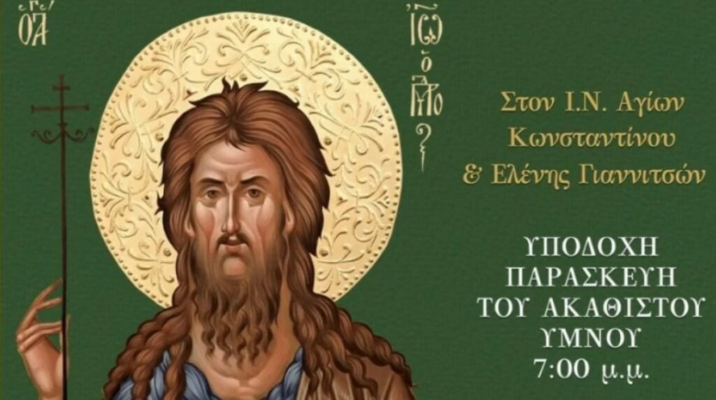 9:00 μ.μ. Ιερά Παράκλησις και Χαιρετισμοί στον Τίμιο Πρόδρομο