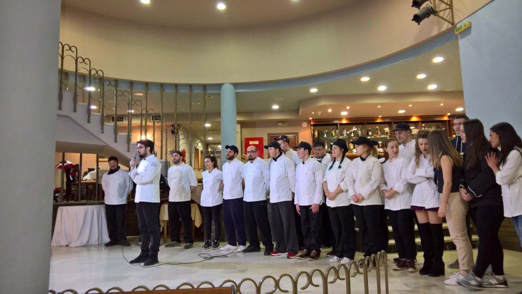 Την Πέμπτη 1/2/2018 επιμελήθηκαν στο Δημοτικό Κέντρο Καταρρακτών, ένα βραδινό Δείπνο “Υψηλής Γαστρονομικής Τέχνης”, μετουσιώνοντας σε πράξη τις σπουδές τους στο ΙΕΚ Έδεσσας καθώς και τις παράλληλες επιμορφώσεις και σεμινάρια που εξέλαβαν στο αρχικό αυτό εξάμηνο σπουδών τους. Το μενού που δημιούργησαν υπό την καθοδήγηση του εκπαιδευτή τους, κ. Κουρατζόγλου Θεόδωρου, και την πολύτιμη αρωγή του Chef των Καταρρακτών κ. Βαρυπάτη Παναγιώτη, έδωσε την ευκαιρία στον κόσμο να γευθεί επιτέλους κάτι διαφορετικό από τα ψητά και σούβλες που έχει “εγκλωβιστεί διατροφικά” τα τελευταία χρόνια. Σε μια Έδεσσα, που μετά το κλείσιμο των τελευταίων “γκουρμέ” κέντρων εστίασης, όπως το εστιατόριο του ΦΟΕ, το ιταλικό “La Taranta”, και ο “Πέτρινος” στην Φλαμουριά, έχει οδηγηθεί σε “ρηχά” γαστρονομικά νερά, η πρόταση των Chef του ΔΙΕΚ Έδεσσας αποτέλεσε μια ξεχωριστή γευστικά νότα που πραγματικά απολαύσαν όσοι τυχεροί παραβρέθηκαν στο Δείπνο.
