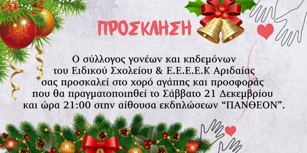 Χορός Αγάπης και Προσφοράς από τον Σύλλογο Γονέων και Κηδεμόνων Ειδικού Σχολείου Ε.Ε.Ε.Ε.Κ. Αριδαίας