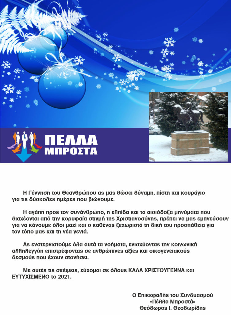 Χριστουγεννιάτικες ευχές από τον Επικεφαλής “Πέλλα Μπροστά” Θεόδωρο Θεοδωρίδη