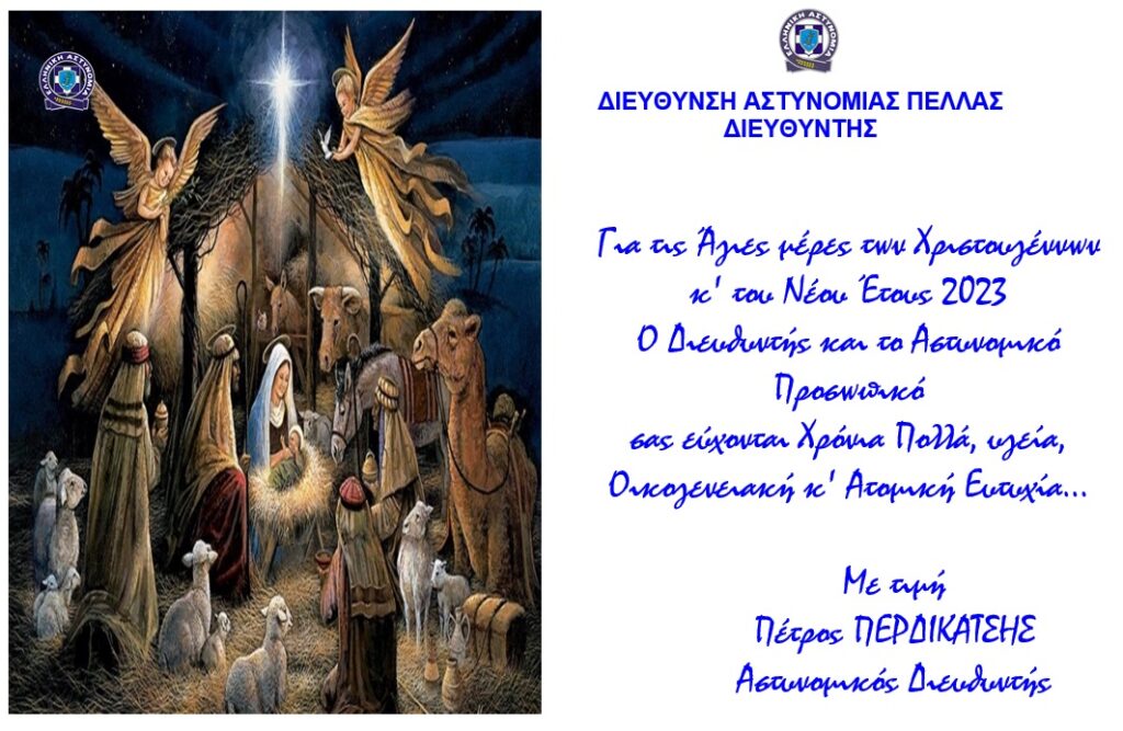 Χριστουγεννιάτικες Ευχές ΔΙΕΥΘΥΝΣΗΣ ΑΣΤΥΝΟΜΙΑΣ ΠΕΛΛΑΣ