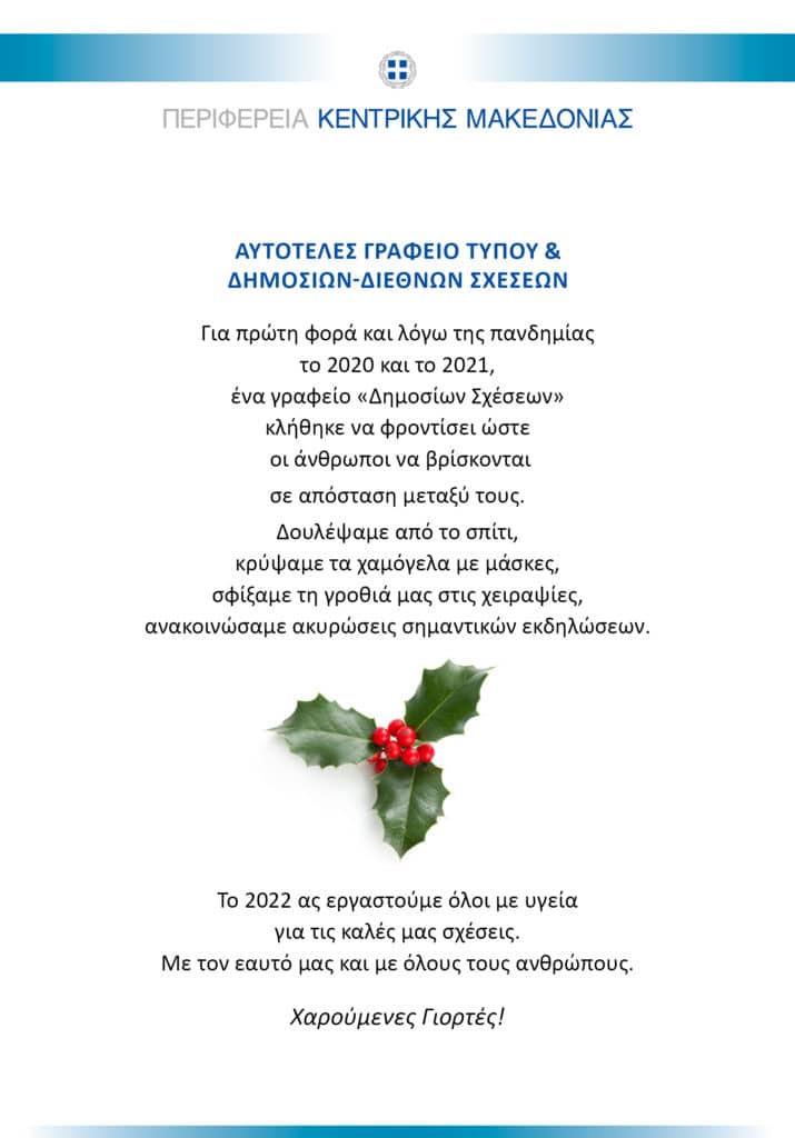 Χριστούγεννα 2021-Ευχές από το Αυτοτελές Γραφείο Τύπου και Δημοσίων – Διεθνών Σχέσεων της Περιφέρειας Κεντρικής Μακεδονίας