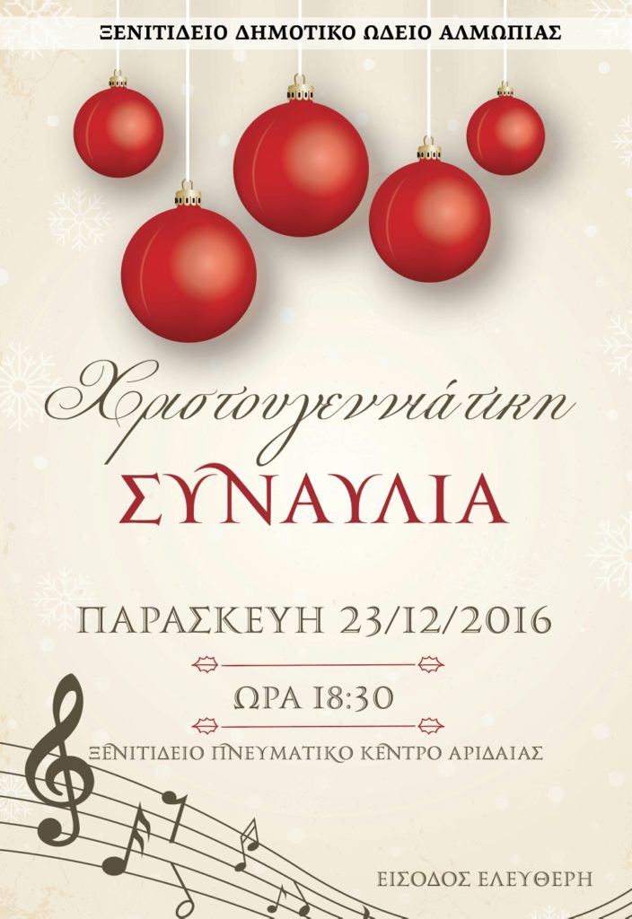 Η ΔΗ.Κ.Ε. Αλμωπίας με το προσωπικό και τις Δομές Βοήθεια Στο Σπίτι καθώς επίσης και με την συνεργασία Εθελοντικών, Μορφωτικών, Πολιτιστικών & Αθλητικών Συλλόγων Δήμου Αλμωπίας ενημερώνει όλους τους πολίτες, ότι πραγματοποιεί την 3η Δράση της Χριστουγεννιάτικης καμπάνιας ΧXSmile «Χαρίζουμε Χριστουγεννιάτικα Χαμόγελα 2016» Δήμου Αλμωπίας.