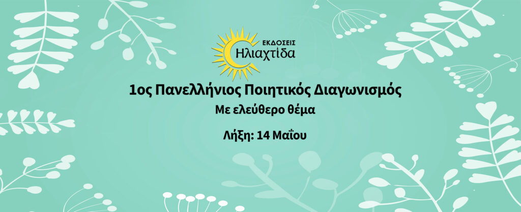 Οι εκδόσεις Hλιαχτίδα προκηρύσσουν τον 1ο Πανελλήνιο Ποιητικό Διαγωνισμό με ελεύθερο θέμα και ημερομηνία λήξης 14 Μαΐου 2023.