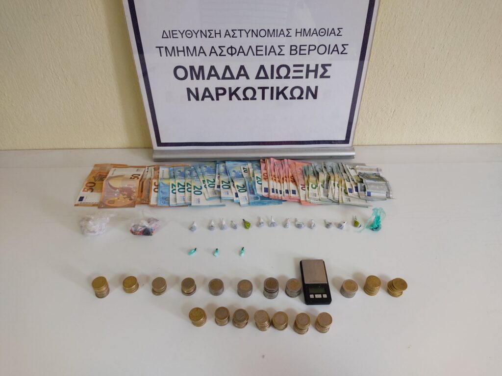 Συνελήφθησαν χθες (30 Ιουνίου 2022) το μεσημέρι σε περιοχή της Θεσσαλονίκης, από αστυνομικούς της Ομάδας Δίωξης Ναρκωτικών του Τμήματος Ασφάλειας Βέροιας, με τη συνδρομή αστυνομικών της Ομάδας Πρόληψης και Καταστολής της Εγκληματικότητας, ένας ημεδαπός άνδρας και μία ημεδαπή γυναίκα, καθώς σε έρευνες που πραγματοποιήθηκαν στις οικίες τους, βρέθηκαν και κατασχέθηκαν αυτοσχέδιες συσκευασίες ναρκωτικών έτοιμες προς διακίνηση και συγκεκριμένα: