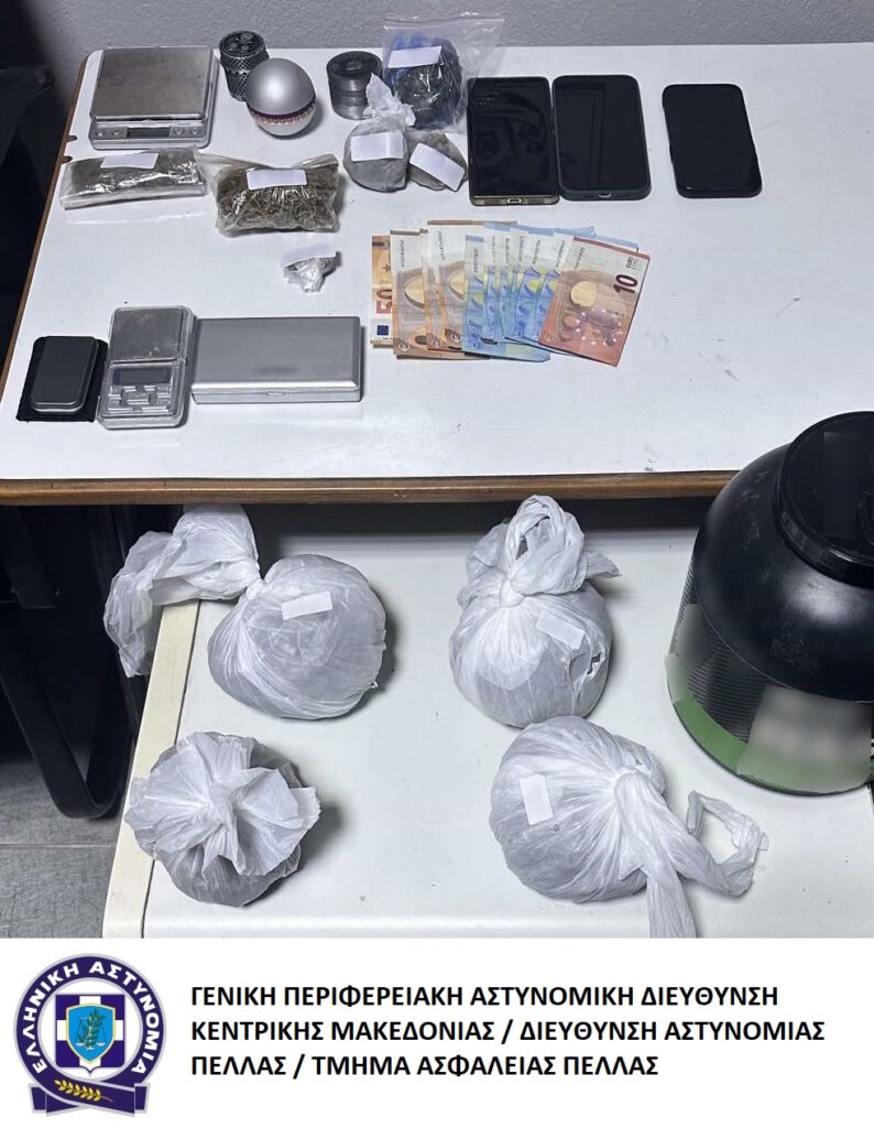 · Συνελήφθη χθες (10 Νοεμβρίου 2023) το πρωί σε περιοχή της Πέλλας, από αστυνομικούς του Τμήματος Ασφάλειας Έδεσσας, ημεδαπός άνδρας, καθώς σε έρευνα που πραγματοποιήθηκε στην οικία του βρέθηκαν και κατασχέθηκαν ποσότητες κάνναβης συνολικού βάρους 992 γραμμαρίων.