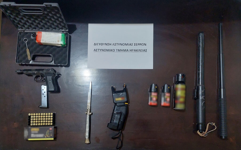 Σύλληψη για παράβαση της νομοθεσίας περί όπλων Συνελήφθη προχθές (11 Ιουνίου 2025) το απόγευμα σε περιοχή των Σερρών, από αστυνομικούς του Αστυνομικού Τμήματος Ηράκλειας, ένας ημεδαπός άνδρας, καθώς σε έρευνα που έγινε στην οικία του, βρέθηκαν μεταξύ άλλων και κατασχέθηκαν: