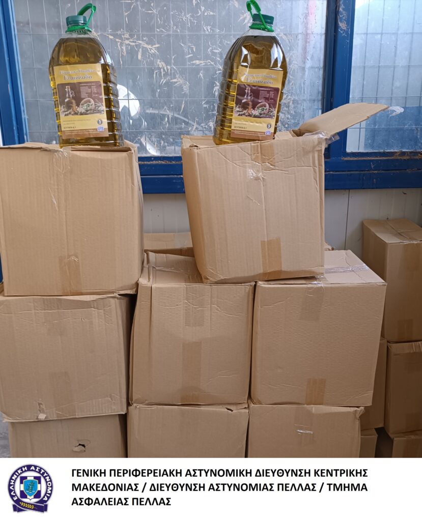 | Σύλληψη για παράβαση της νομοθεσίας για τα τρόφιμα και τους κανόνες αγοράς προϊόντων | ![]() ΔΙΑΦΗΜΙΣΗ Συνελήφθη προχθές (14 Οκτωβρίου 2023) το μεσημέρι σε περιοχή της Πέλλας, από αστυνομικούς του Τμήματος Ασφάλειας Πέλλας, ημεδαπός άνδρας, καθώς σε έλεγχο που πραγματοποιήθηκε σε κατάστημά του, βρέθηκαν 101 πλαστικά δοχεία, που έφεραν την επιγραφή «Εξαιρετικό Παρθένο Ελαιόλαδο» και περιείχαν συνολική ποσότητα λαδιού 505 λίτρων, αμφιβόλου ποιότητας και προέλευσης και τα οποία διέθετε προς πώληση χωρίς να κατέχει τα απαραίτητα παραστατικά. Οι παραπάνω ποσότητες λαδιού κατασχέθηκαν και θα σταλούν για εργαστηριακή εξέταση στην αρμόδια Χημική Υπηρεσία.