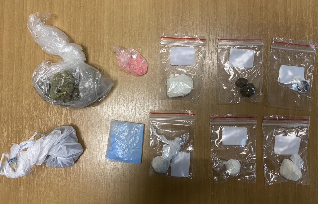 Στην κατοχή του οδηγού βρέθηκαν και κατασχέθηκαν 2 συσκευασίες με κοκαΐνη, συνολικού βάρους 2,5 γραμμαρίων και 1 συσκευασία με κατεργασμένη κάνναβη, βάρους 0,7 γραμμαρίων.