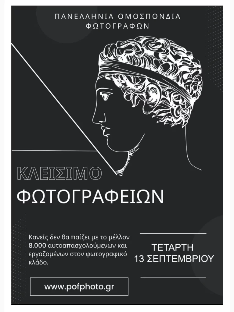 Η Πανελλήνια Ομοσπονδία Φωτογράφων εξέδωσε σχετική ανακοίνωση για τη σημερινή κινητοποίηση και μεταξύ άλλων αναφέρει: «Συνάδελφοι, στις 13 Σεπτεμβρίου 2023, όλοι οι επαγγελματίες φωτογράφοι, ανήκουμε ή όχι σε κάποια συνδικαλιστική ένωση, κλείνουμε τα καταστήματα μας και δεν πραγματοποιούμε φωτογραφίσεις για κρατικά έγγραφα.