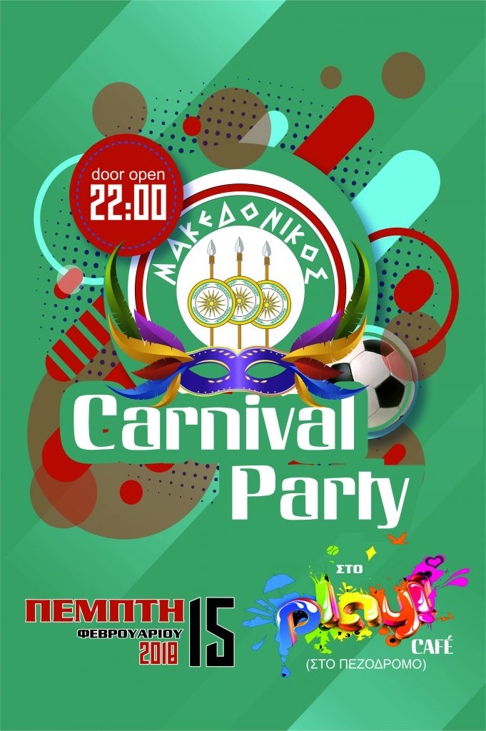 H παρέα του Μακεδονικού σας προσκαλεί για τρελό ξεφάντωμα στον ρυθμό του Εδεσσαϊκού Καρναβαλιού την Πέμπτη 15 Φεβρουαρίου. Ώρα έναρξης 22:00. Να είστε όλοι εκεί!