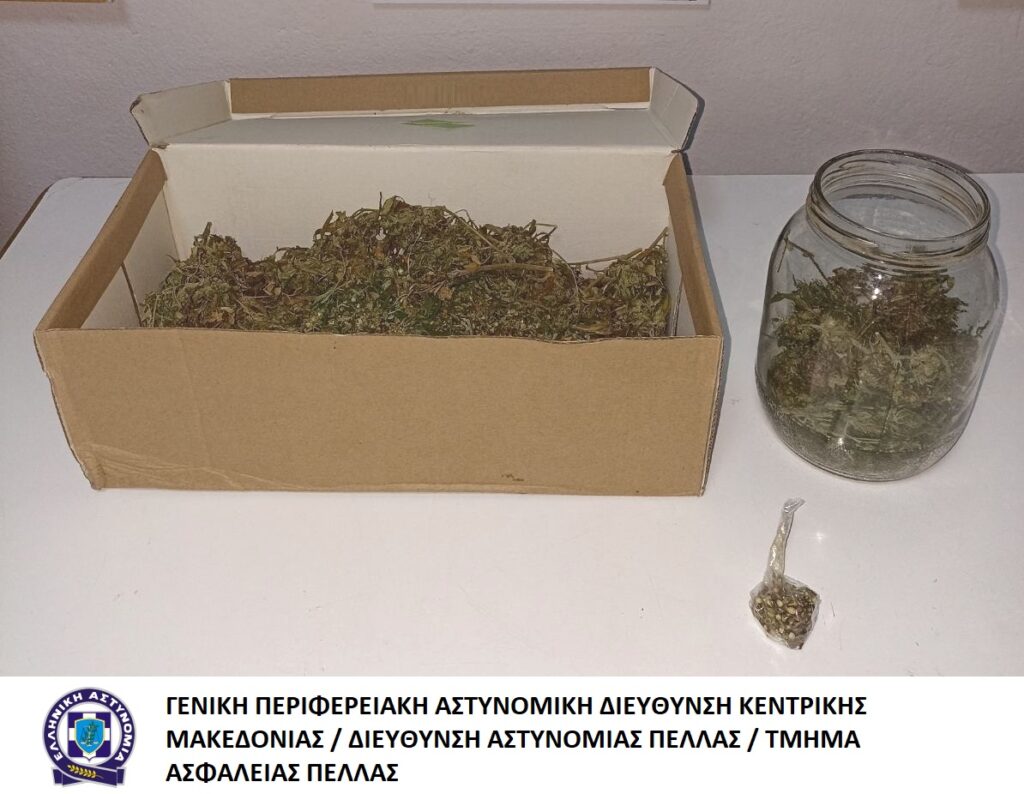 | Σύλληψη για ναρκωτικά | ![]() ΔΙΑΦΗΜΙΣΗ Συνελήφθη χθες (6 Νοεμβρίου 2023) το πρωί σε περιοχή της Πέλλας, από αστυνομικούς του Γραφείου Δίωξης Ναρκωτικών του Τμήματος Ασφάλειας Πέλλας, ημεδαπός άνδρας, καθώς σε αγρόκτημα ιδιοκτησίας του, βρέθηκαν και κατασχέθηκαν ποσότητες κάνναβης βάρους 110 γραμμαρίων και 222 σπόροι κάνναβης.