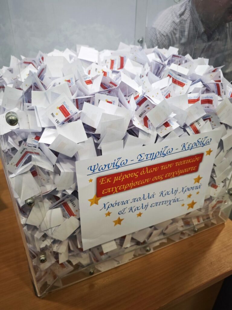 Με ιδιαίτερη χαρά σας ανακοινώνουμε τα αποτελέσματα της κλήρωσης της εορταστικής μας δράσης “ΨΩΝΙΖΩ – ΣΤΗΡΙΖΩ – ΚΕΡΔΙΖΩ”. Η εκδήλωση πραγματοποιήθηκε παρουσία του Διοικητικού Συμβουλίου του συλλόγου μας, του Δημάρχου Έδεσσας, αντιδημάρχων, του προέδρου της Ομοσπονδίας Εμπορικών Συλλόγων Κεντρικής & Δυτικής Μακεδονίας, εκπροσώπων της ΕΣΕΕ & φίλων του συλλόγου.