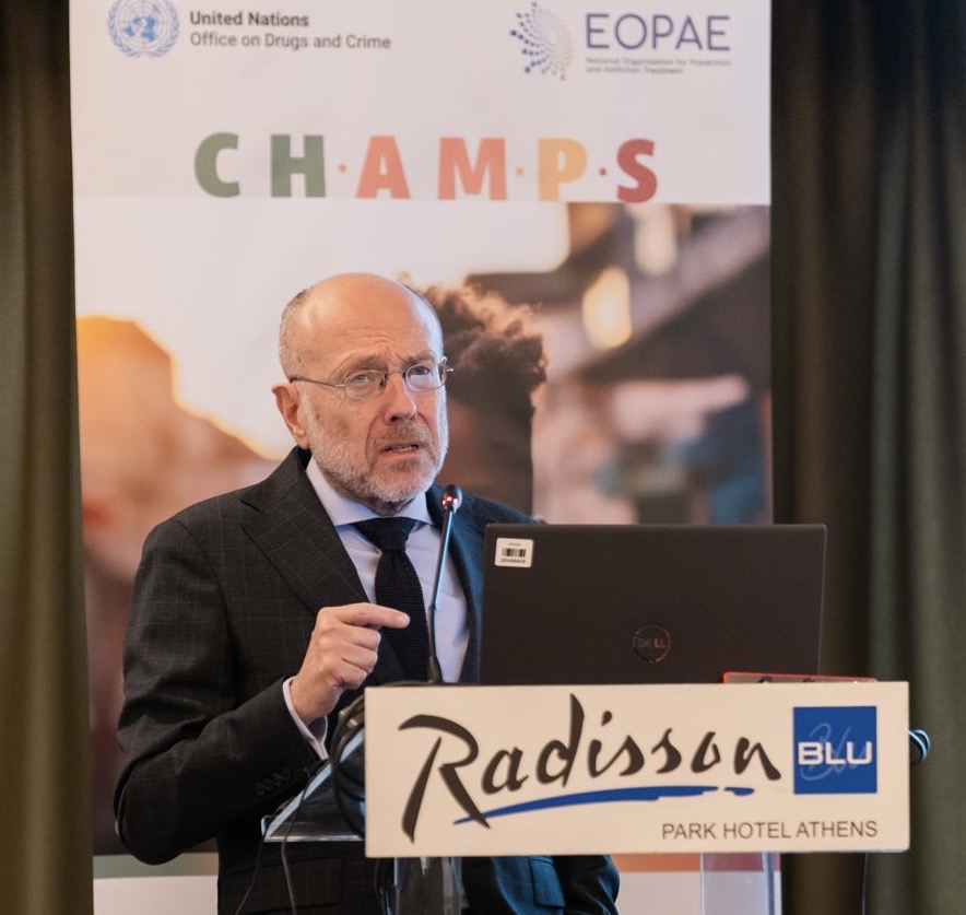 Κεντρικός ομιλητής ήταν ο Dr. Wadih Maalouf, Παγκόσμιος Συντονιστής Προγραμμάτων Πρόληψης του UNODC, ο οποίος παρουσίασε τη φιλοσοφία, τη δομή και τη στρατηγική σημασία του CHAMPS.