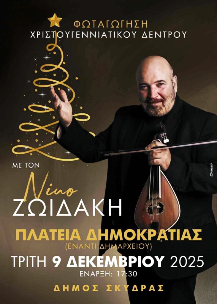 Οι γιορταστικές χριστουγεννιάτικες εκδηλώσεις του Δήμου Σκύδρας ξεκινούν επίσημα με τη φωταγώγηση του Χριστουγεννιάτικου Δέντρου στην πλατεία Δημοκρατίας (έναντι Δημαρχείου), την Τρίτη 9 Δεκεμβρίου 2025.