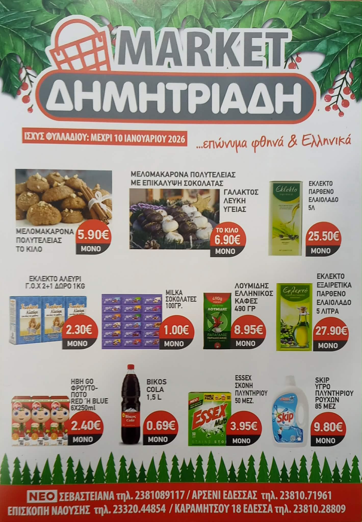 Γιορτινές προσφορές από τα Μάρκετ Δημητριάδη Έδεσσα - Αρσένι - Επισκοπή Γιορτινές προσφορές από τα Μάρκετ Δημητριάδη Έδεσσα - Αρσένι - Επισκοπή Γιορτινές προσφορές από τα Μάρκετ Δημητριάδη Έδεσσα - Αρσένι - Επισκοπή