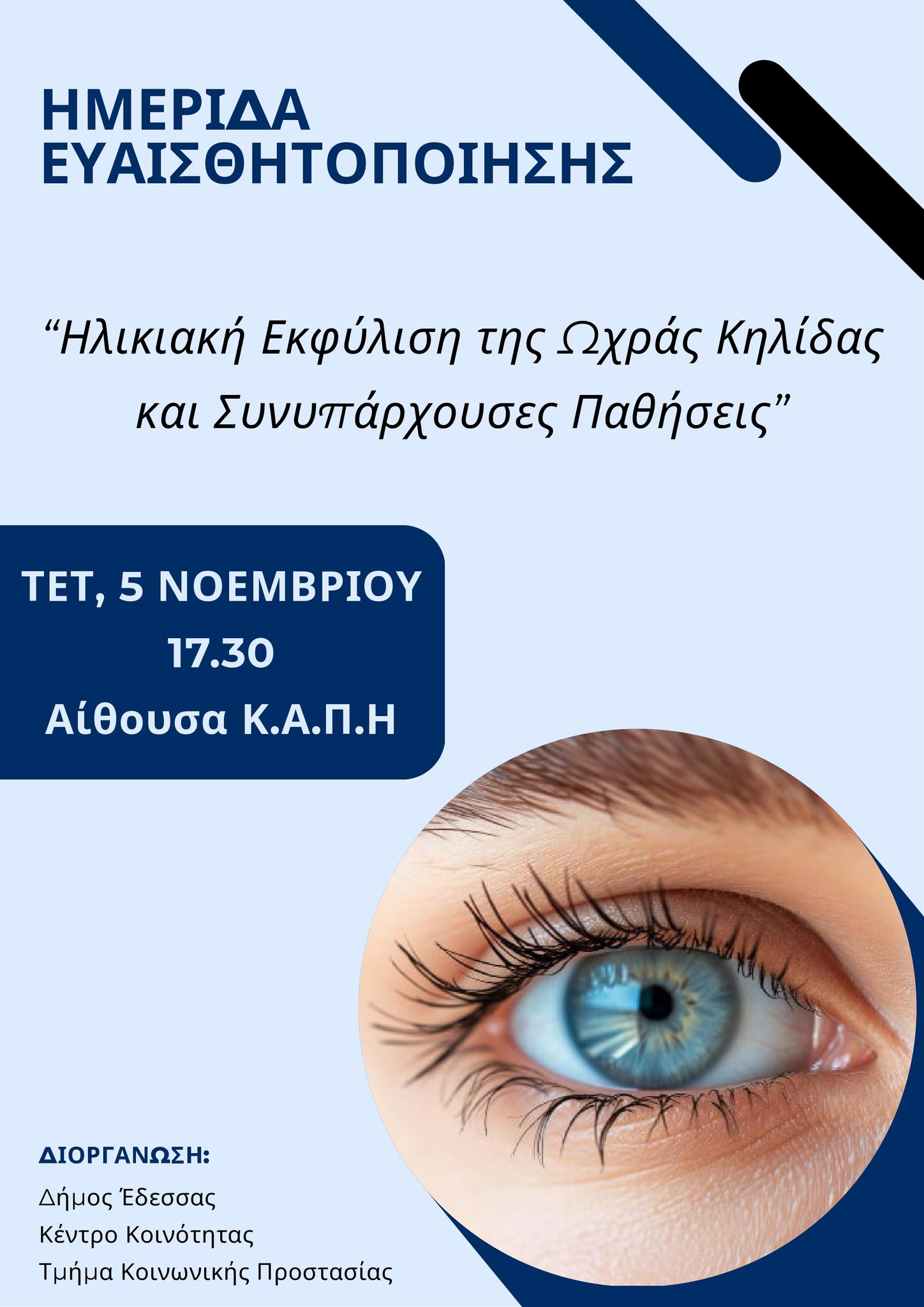 Ημερίδα Ευαισθητοποίησης με θέμα “Ηλιακή Εκφύλιση της Ωχράς Κηλίδας και Συνυπάρχουσες Παθήσεις”
