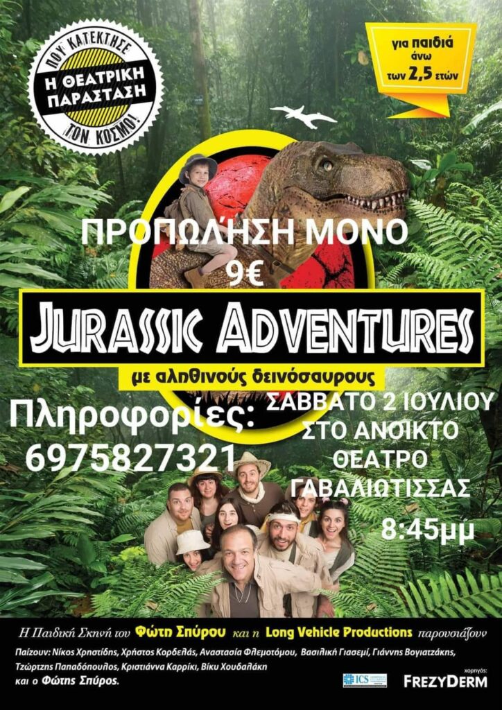 H θεατρική παράσταση JURASSIC ADVENTURES περιέχει τεράστιους κινούμενους Δεινόσαυρους 5,5 μέτρων. Η λεπτομερής κίνηση των δεινόσαυρων που τους κάνει να μοιάζουν αληθινοί συντελείτε χάρη στο τελευταίας τεχνολογίας υδραυλοκίνητο σύστημα τους, καθώς και στον ειδικά εκπαιδευμένο performer που βρισκεται στο εσωτερικό. Επίσης η παράσταση περιέχει special effects φωτισμού, και για πρώτη φορά dolby surround σύστημα ήχου.
