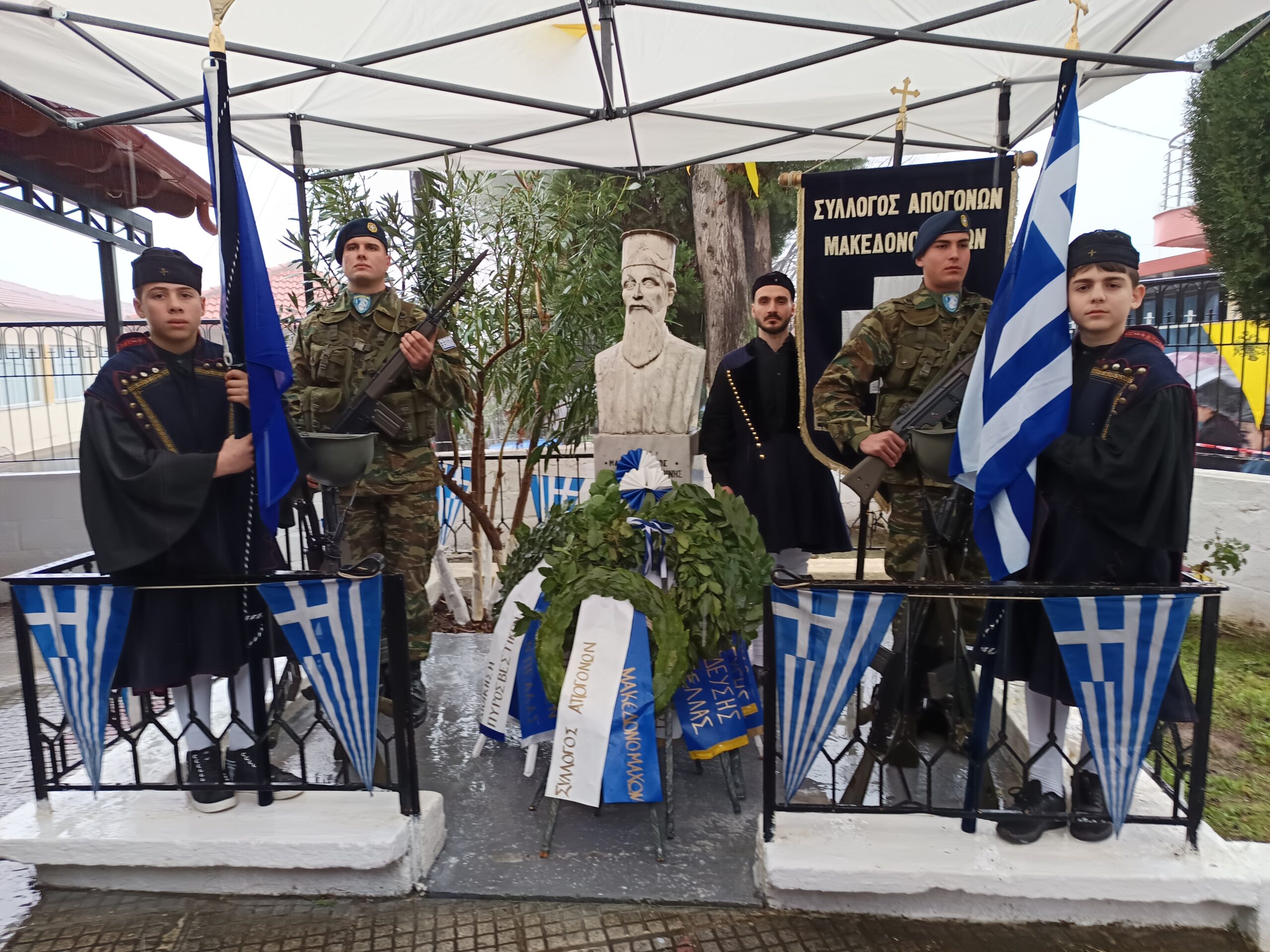 Παρά το ψύχος και την συνεχή βροχή τελέσθηκε κανονικά το τρισάγιο και οι καταθέσεις στεφάνων στην προτομή του Ιερέα Παπαστογιάννη, στον προαύλιο χώρο της Εκκλησίας.