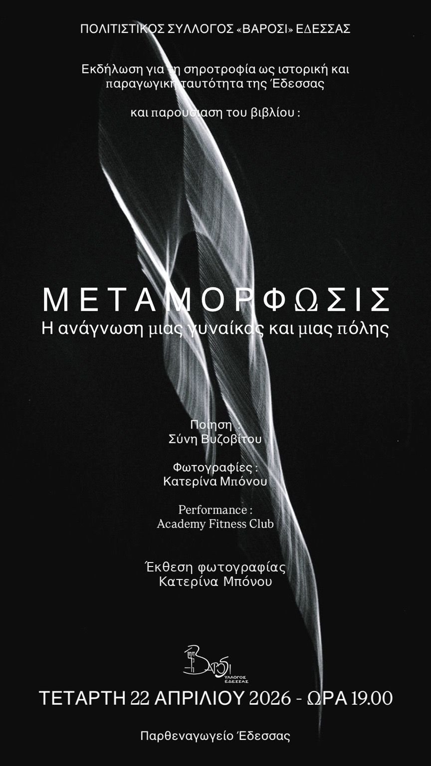 Η εκδήλωση, που θα πραγματοποιηθεί την Τετάρτη 22 Απριλίου, στις 7 το απόγευμα, στο Παρθεναγωγείο Έδεσσας, ακολουθεί την εξέλιξη του νήματος του μεταξιού έως το κουκούλι και την τελική μεταμόρφωσή του, αναδεικνύοντας τη διαχρονικότητα της έννοιας της μεταμόρφωσης και προσφέροντας μια νέα οπτική τόσο στο έργο όσο και στην πολιτιστική κληρονομιά της περιοχής.