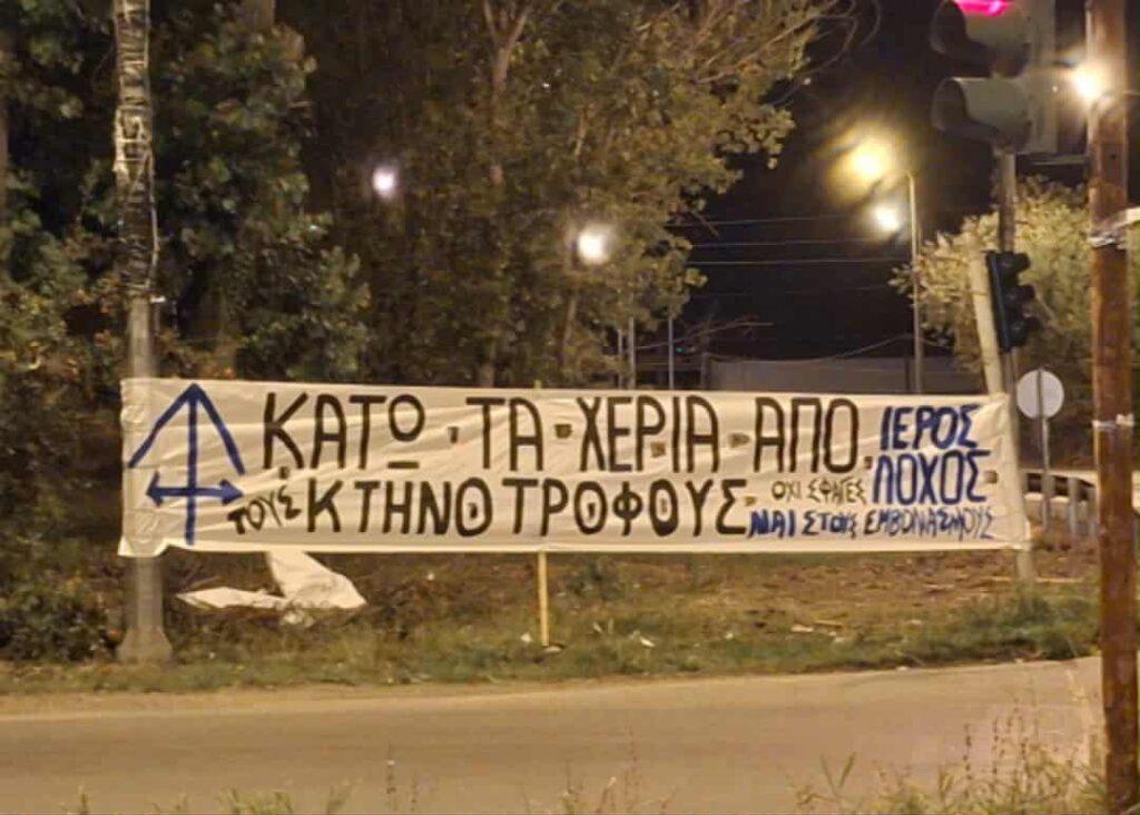 Κτηνοτρόφοι μέλη του Εθνικού Κοινωνικού Κινήματος τοποθέτησαν πανό στον νομό Πέλλας. |