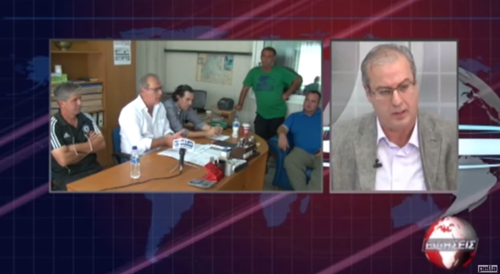 O Γιάννης Σηφάκης στο δελτίο ειδήσεων του ΠΕΛΛΑ TV για οργάνωση αγροτών, επισιτιστική βοήθεια, αποχετευτικό και βιολογικός Αριδαίας και υγεία στην Πέλλα
