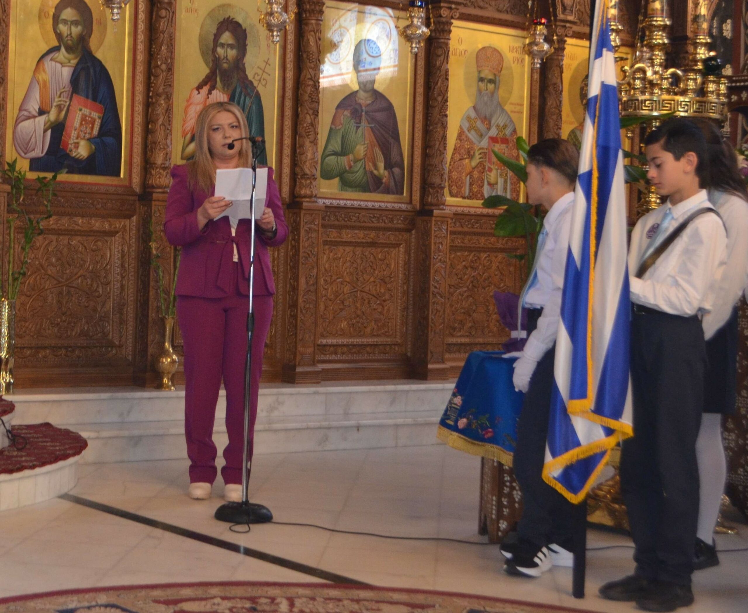 Τον πανηγυρικό της ημέρας εκφώνησε κι ανέλυσε η Διευθύντρια του 1ου Δημοτικού Σχολείου Σκύδρας Κωνσταντινιά Μόσχου.