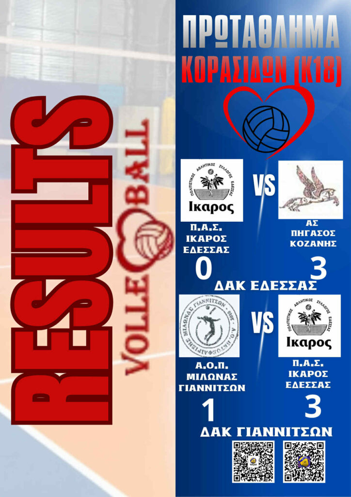 Το ξεκίνημα της σεζόν δείχνει ότι οι Κορασίδες (Κ18) της ομάδας Π.Α.Σ ΙΚΑΡΟΣ ΕΔΕΣΣΑΣ έχουν δυνατότητες για μια καλή πορεία στο πρωτάθλημα, αρκεί οι αγώνες να κρίνονται αποκλειστικά από τις προσπάθειες των αθλητριών εντός γηπέδου.