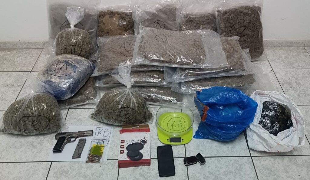 Συνελήφθη ένα άτομο για διακίνηση και κατοχή ναρκωτικών ουσιών, καθώς και για παράνομη οπλοκατοχή Κατασχέθηκαν περισσότερα από 20 κιλά κάνναβης, πάνω από 1 κιλό κοκαΐνης και ένα πιστόλι
