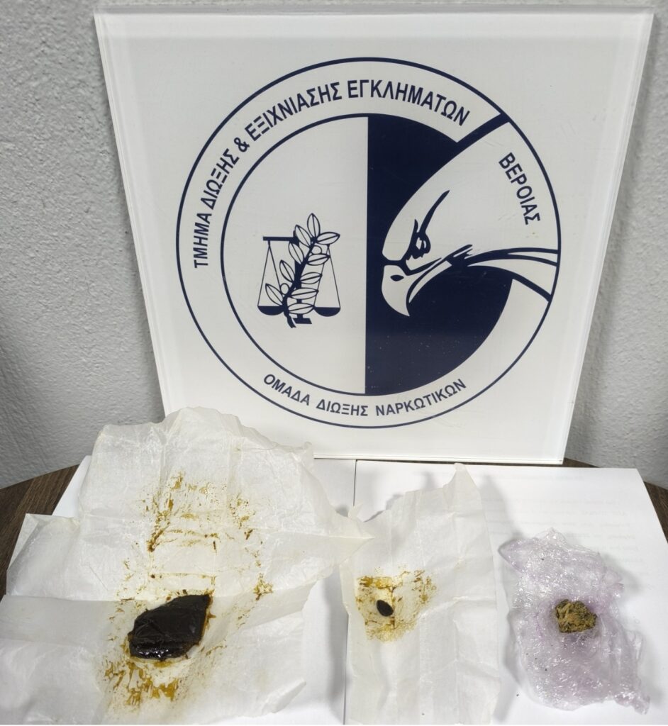 Στο πλαίσιο στοχευμένων δράσεων για την καταπολέμηση της διάδοσης των ναρκωτικών ουσιών, συνελήφθησαν χθες (6 Οκτωβρίου 2025) σε περιοχές της Ημαθίας, από αστυνομικούς του Τμήματος Δίωξης και Εξιχνίασης Εγκλημάτων Βέροιας, 3 ημεδαποί άνδρες, σε διαφορετικές περιπτώσεις, για παραβάσεις της νομοθεσίας για τα ναρκωτικά.