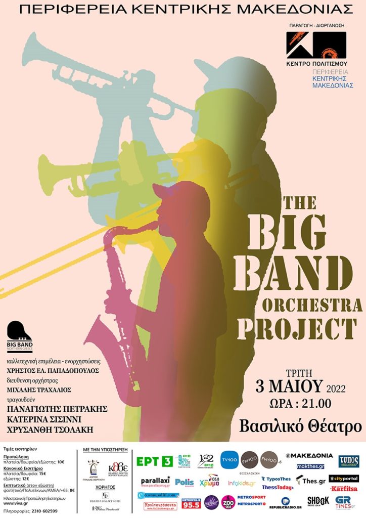 Το Κέντρο Πολιτισμού Περιφέρειας Κεντρικής Μακεδονίας παρουσιάζει την Τρίτη 3 Μαΐου, στο Βασιλικό Θέατρο Θεσσαλονίκης, για πρώτη φορά ζωντανά στο κοινό της πόλης, την νεοσύστατη Big Band Βορείου Ελλάδος. Μια ορχήστρα στην οποία κυριαρχούν τα πολλά πνευστά όργανα (χάλκινα και ξύλινα) και που αποτελείται από τη νέα γενιά της τζαζ σκηνής της βόρειας Ελλάδας.