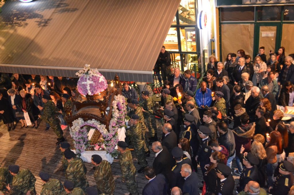 Πλήθος πιστών συμμετείχε με κατάνυξη στην περιφορά του Επιταφίου Ιερού Ναού της Αγίας Σκέπης στην Έδεσσα. Ο Επιτάφιος περίπου στις 22.00 έφτασε στην Πλατεία Ελευθερίας.