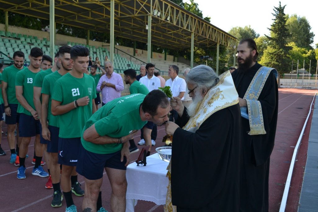 Ο καθιερωμένος αγιασμός του Εδεσσαϊκού πραγματοποιήθηκε σήμερα το απόγευμα στο Δημοτικό Στάδιο “Φόρης Γεντζής” ενόψει της νέας αγωνιστικής περιόδου, πριν από την απογευματινή προπόνηση. Το μυστήριο τέλεσε ο Μητροπολίτης Πέλλας και Αλμωπίας κ.κ. Ιωηλ ο οποίος ευχήθηκε πολλές χαρές και επιτυχίες για την καινούργια αγωνιστική χρονιά.