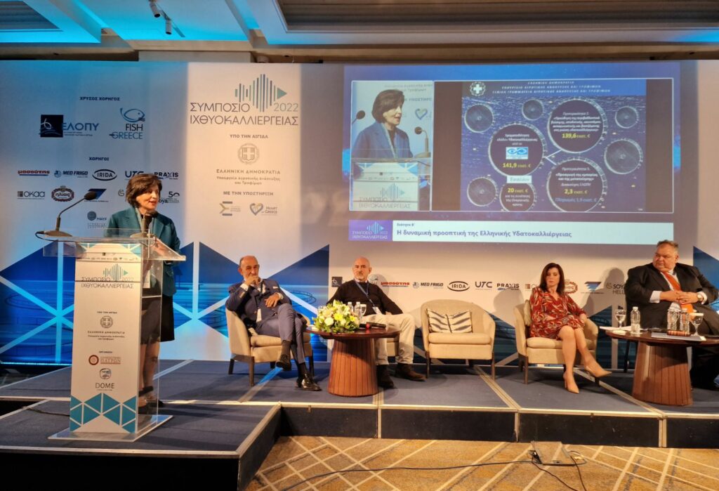 Εισαγωγική ομιλία στην ενότητα: «Η δυναμική προοπτική της Ελληνικής Υδατοκαλλιέργειας», έκανε η Γενική Γραμματέας Αγροτικής Ανάπτυξης και Τροφίμων Χριστιάνα Καλογήρου στο 2ο Συμπόσιο για τις Ιχθυοκαλλιέργειες.