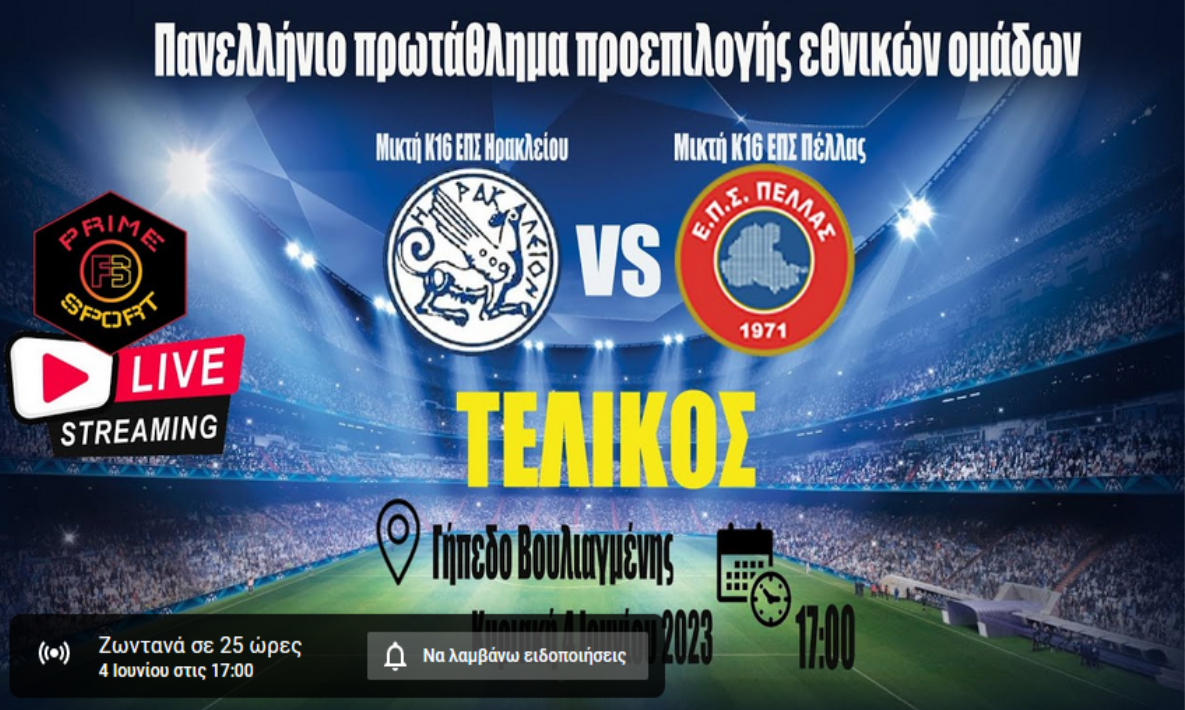 Zωντανή μετάδοση του τελικού της Μικτής Κ16 της Πέλλας με την αντίστοιχη του Ηρακλείου